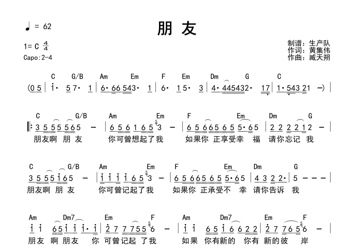 臧天朔《朋友(和弦谱)》简谱 - 和弦谱