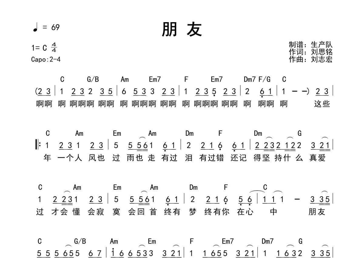 《朋友(和弦谱)》是和弦谱演唱的一首歌曲,和弦谱,这份简谱共有一张高清图谱,图谱由 @生产队 编配上传周华健演唱的经典歌曲《朋友》和弦弹唱谱。