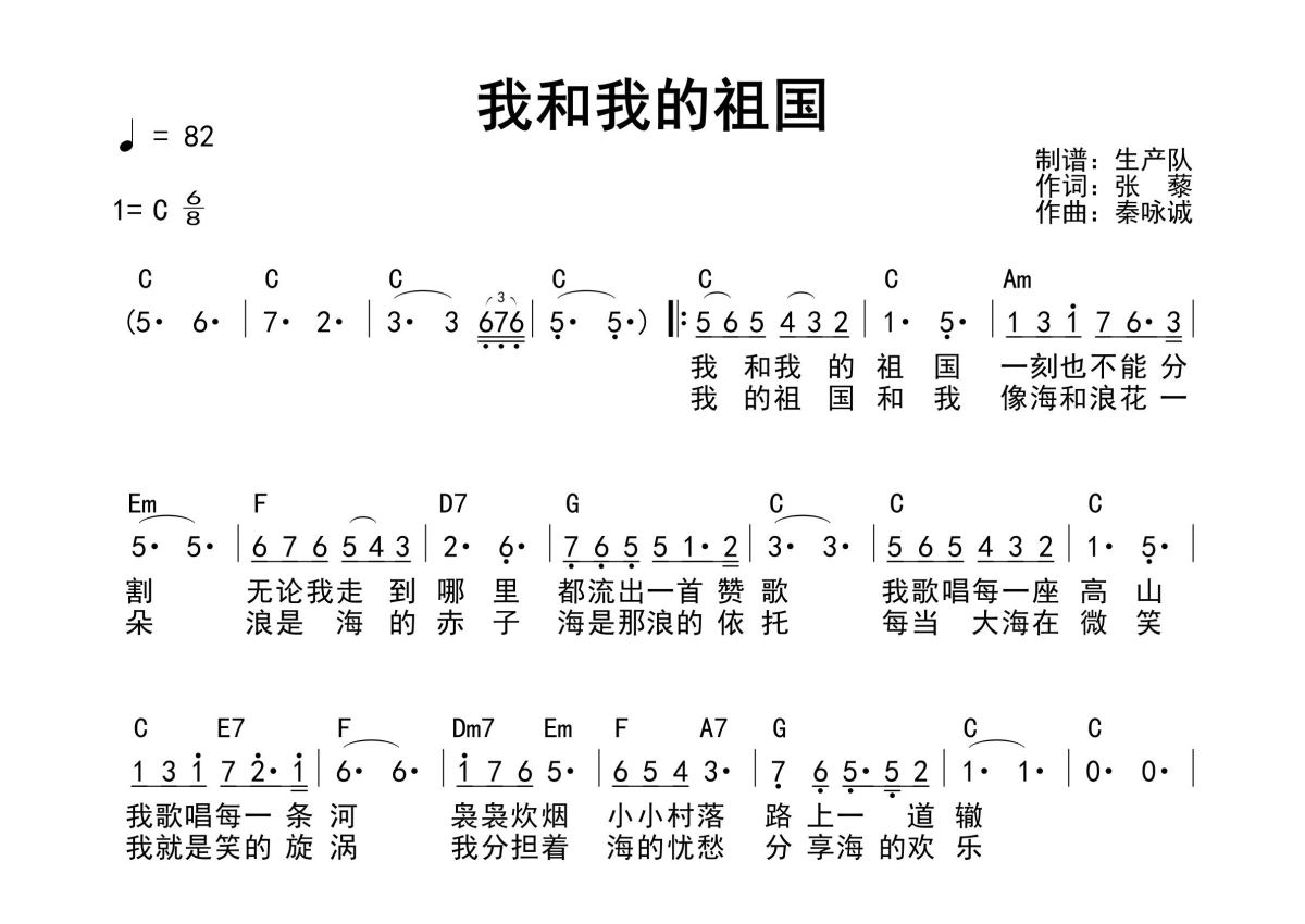 >我和我的祖国(和弦谱)