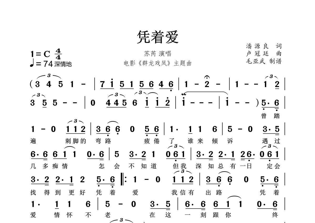 凭着爱简谱 - 苏芮演唱