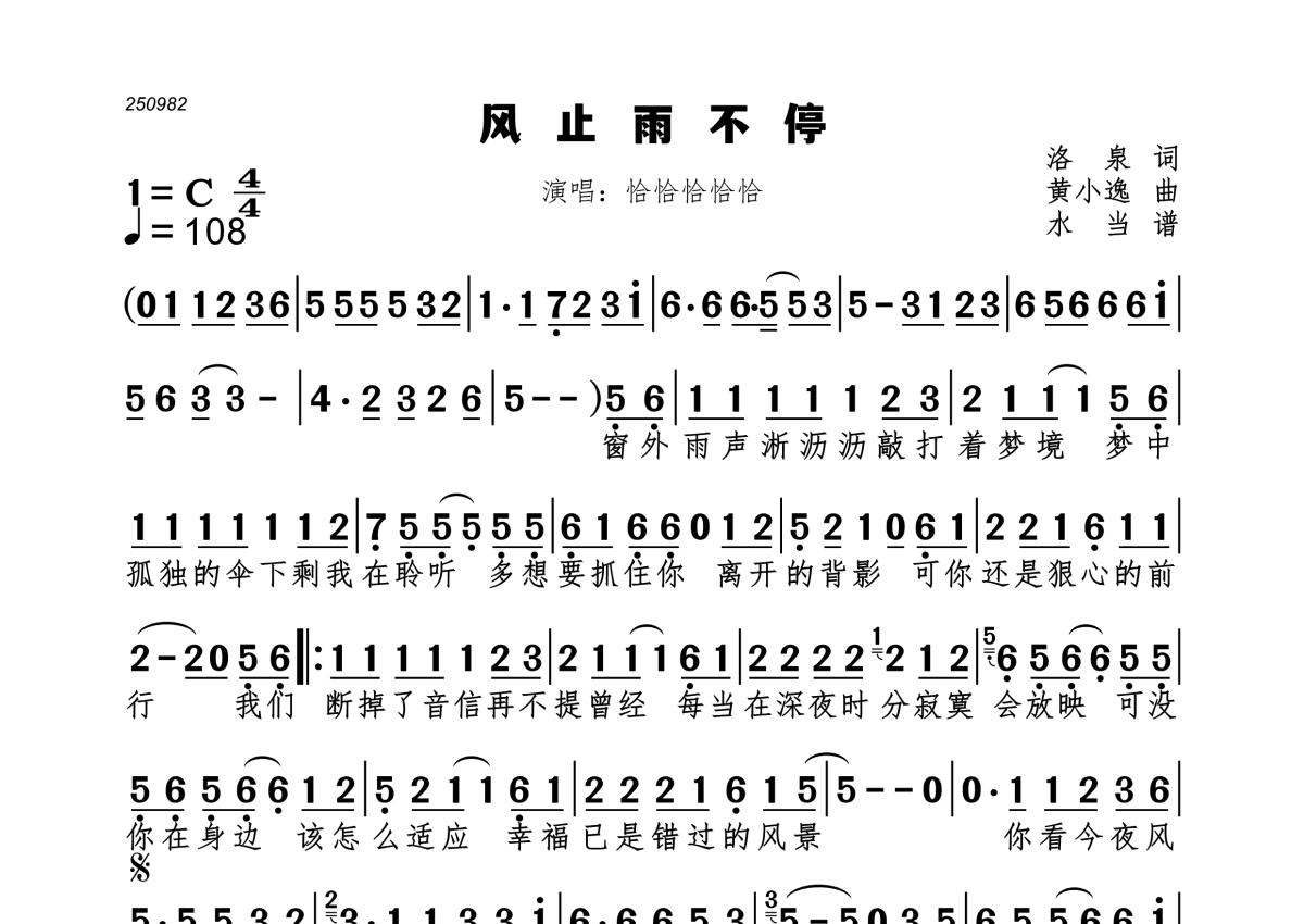 风止雨不停简谱 - 恰恰恰恰恰演唱
