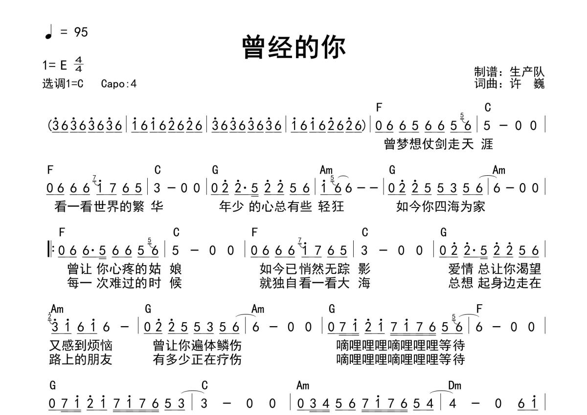 《曾经的你(和弦谱)》是和弦谱演唱的一首歌曲,和弦谱,这份简谱共有一张高清图谱,图谱由 @生产队 编配上传许巍演唱的经典歌曲《曾经的你》和弦弹唱谱。