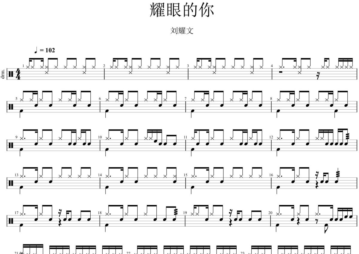 刘耀文《耀眼的你》架子鼓谱