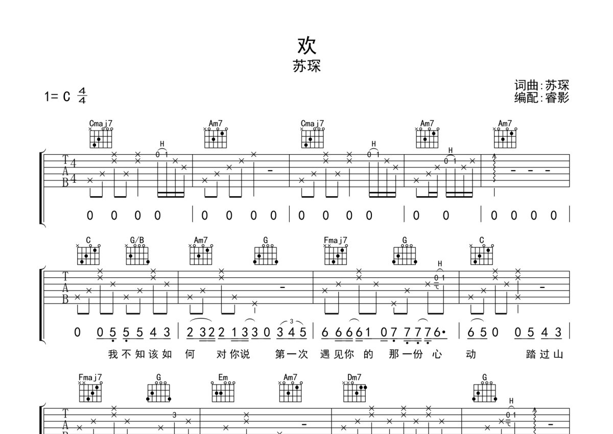 苏琛《欢》吉他谱 - C调弹唱六线谱