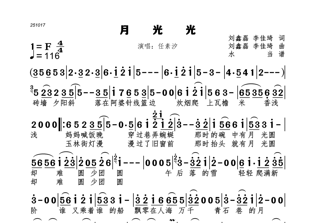 月光光简谱 - 任素汐演唱