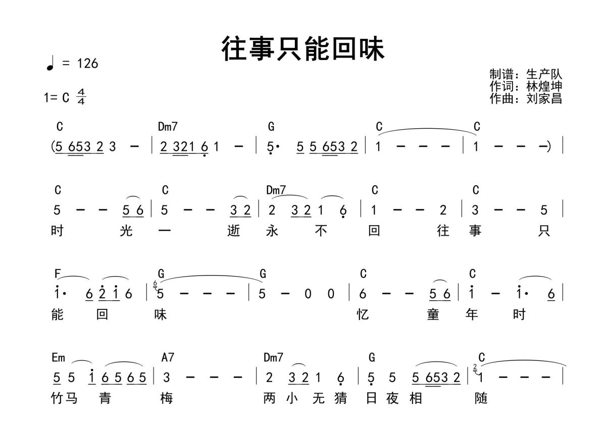 《往事只能回味(和弦谱)》是和弦谱演唱的一首歌曲,和弦弹唱谱,拍号为4/4拍,歌曲速度为每分钟126拍,这份简谱共有一张高清图谱,图谱由 @生产队 编配上传邓丽君演唱的经典歌曲《往事只能回味》和弦弹唱谱,免翻页编配。