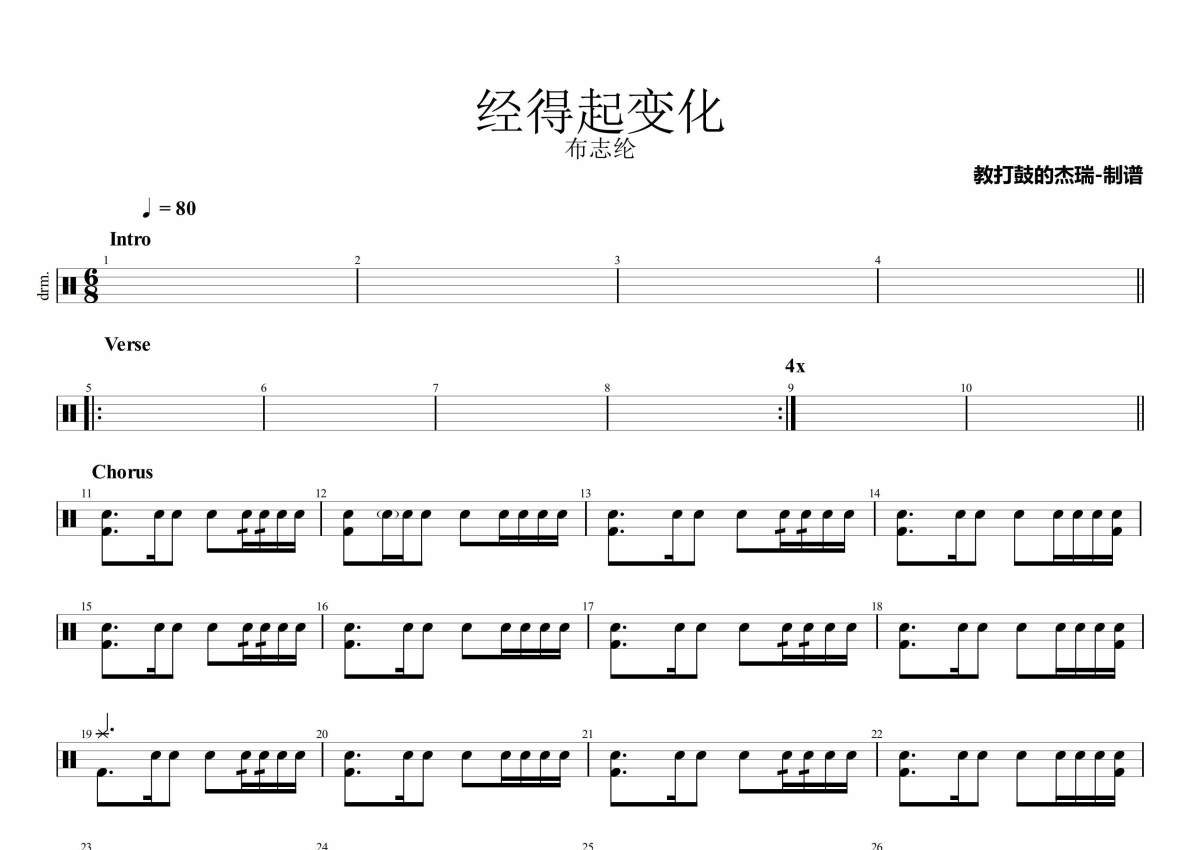 布志纶《经得起变化》架子鼓谱