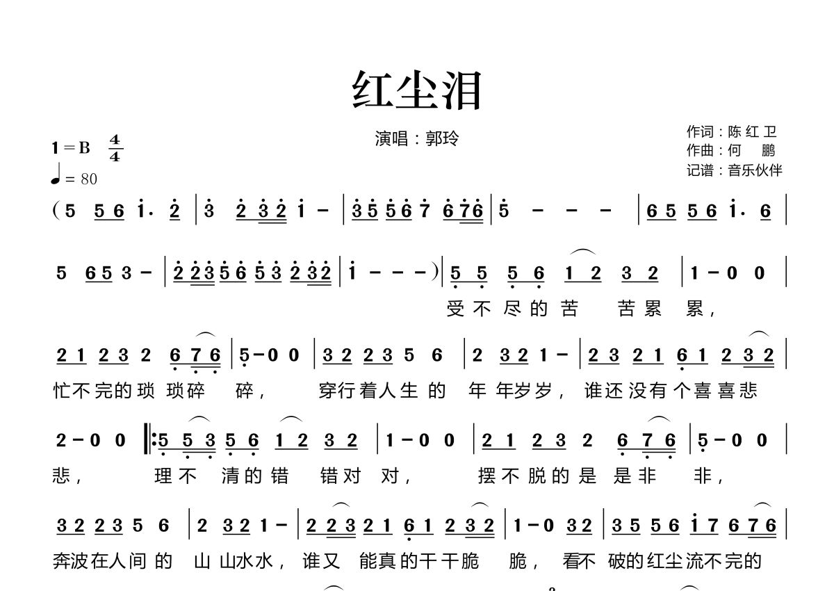 红尘泪简谱 - 郭玲演唱