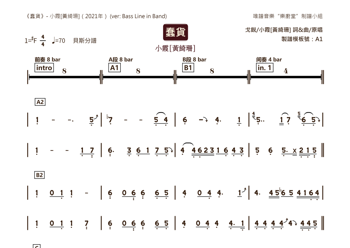 黄绮珊《蠢货》乐队总谱 - 贝斯分谱完整版