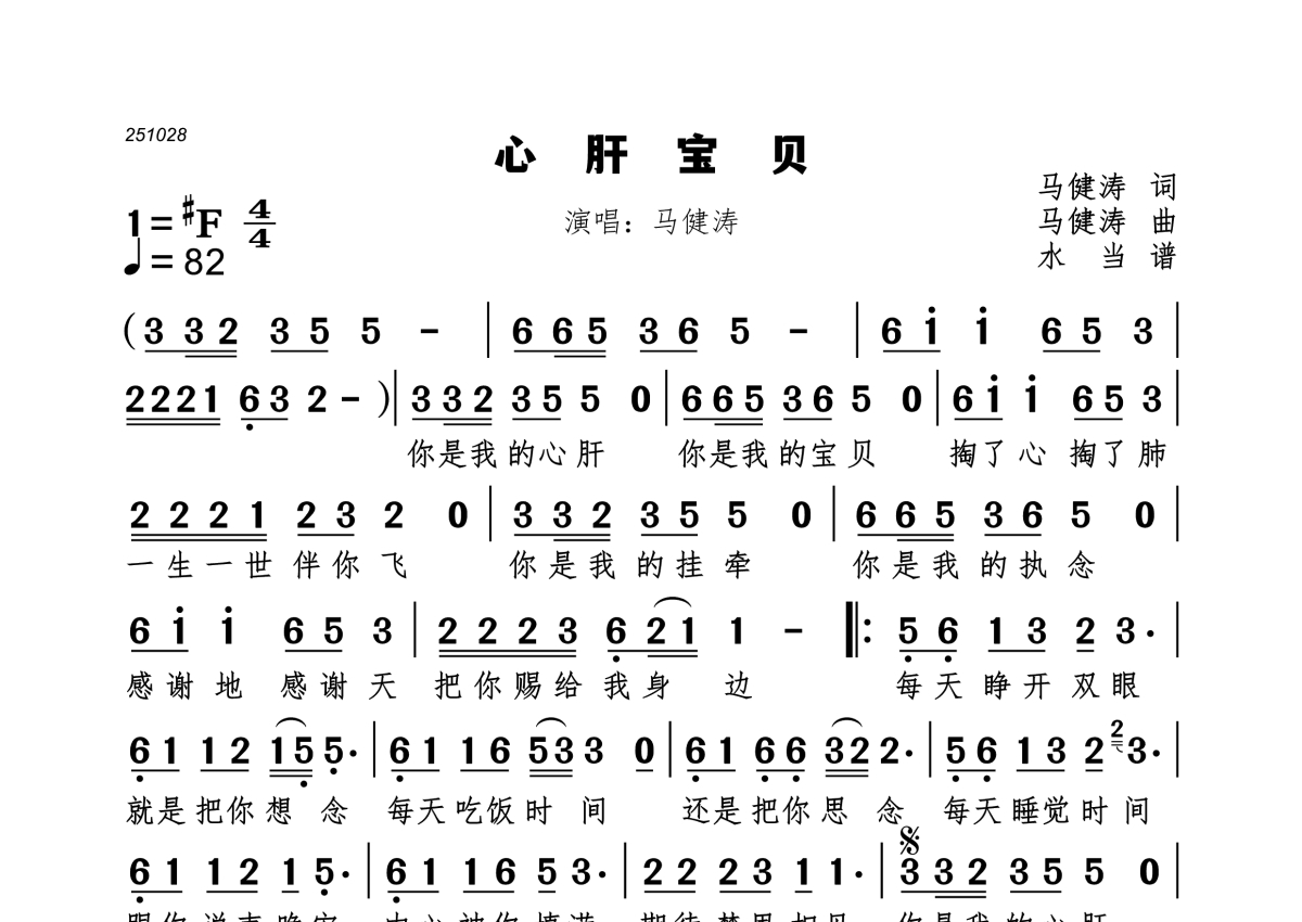 《心肝宝贝》是马健涛演唱的一首歌曲,这份简谱共有一张高清图谱,图谱由 @水当 编配上传。