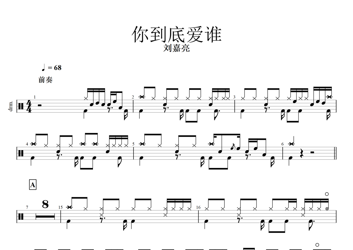 刘嘉亮《你到底爱谁》架子鼓谱