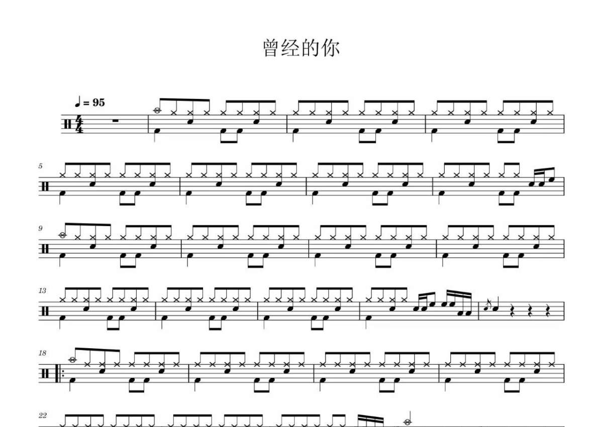 《曾经的你》是许巍演唱的一首歌曲,拍号为4/4拍,歌曲速度为每分钟95拍,这份架子鼓谱共有两张高清图谱,图谱由 @音符喷血者 编配上传,图谱使用五线谱编配,使用这份曾经的你架子鼓谱,你将能够轻松地敲打出这首许巍的曾经的你,快来尝试吧。