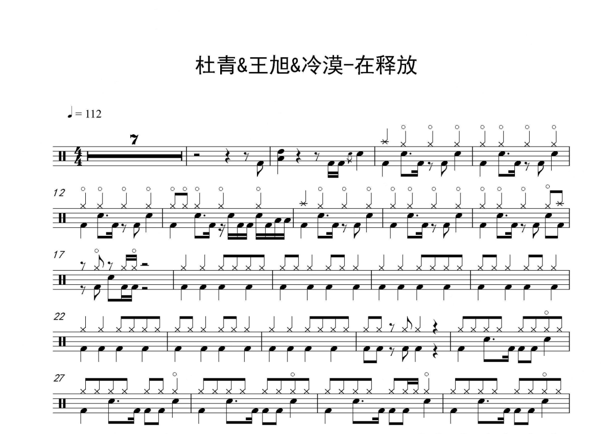 杜青&王旭&冷漠《在释放》架子鼓谱