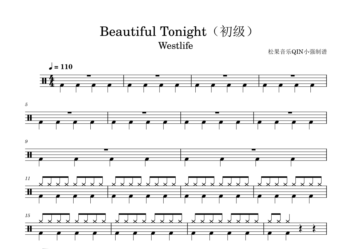 《Beautiful Tonight(初级)》是初级演唱的一首歌曲,这份架子鼓谱共有三张高清图谱,图谱由 @松果音乐QIN小强 编配上传,图谱使用五线谱编配,使用这份Beautiful Tonight(初级)架子鼓谱,你将能够轻松地敲打出这首初级的Beautiful Tonight(初级),快来尝试吧。《Beautiful Tonight》是爱尔兰男子组合Westlife于2010年11月22日发行的专辑《Gravity》中的歌曲,由格莱美奖制作人John Shanks参与创作,融合流行摇滚与电子元素。