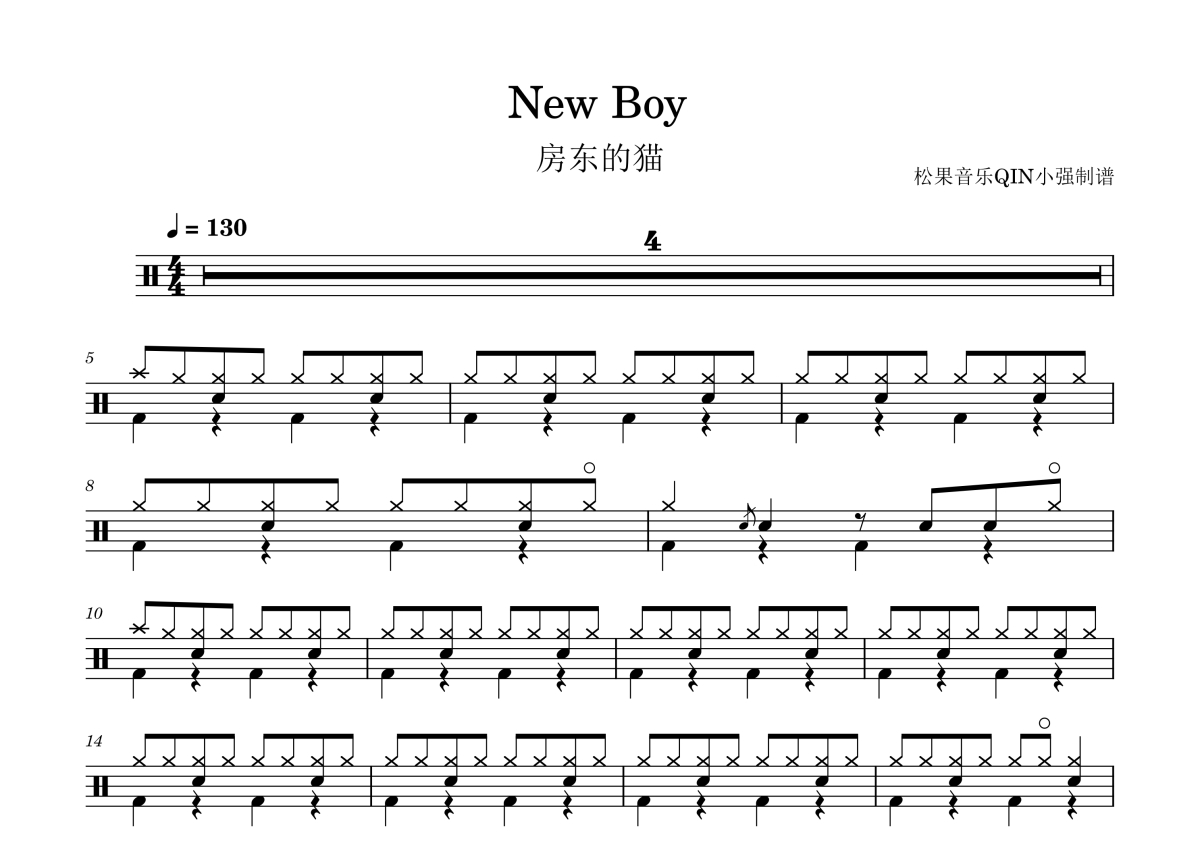 NEW BOY架子鼓谱 - 房东的猫演唱