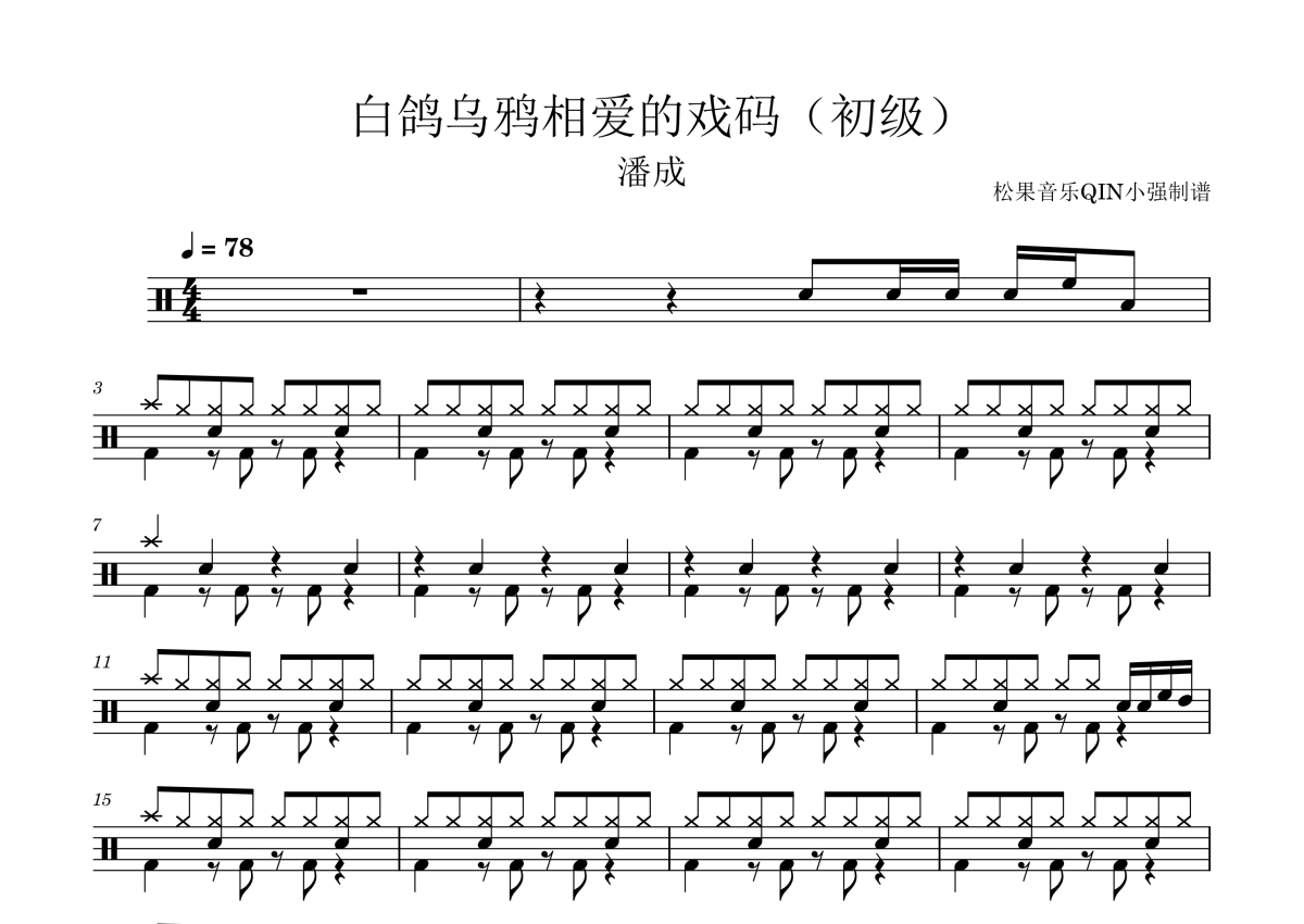 潘成《白鸽乌鸦相爱的戏码(初级)》架子鼓谱