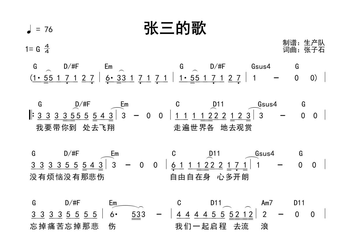 >张三的歌(和弦谱)