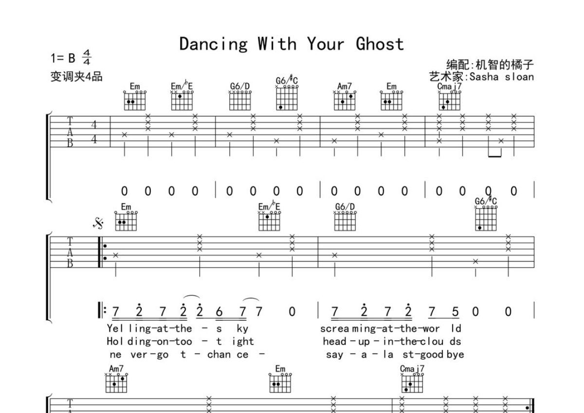 Sasha Sloan《Dancing With Your Ghost》吉他谱 - G调弹唱六线谱