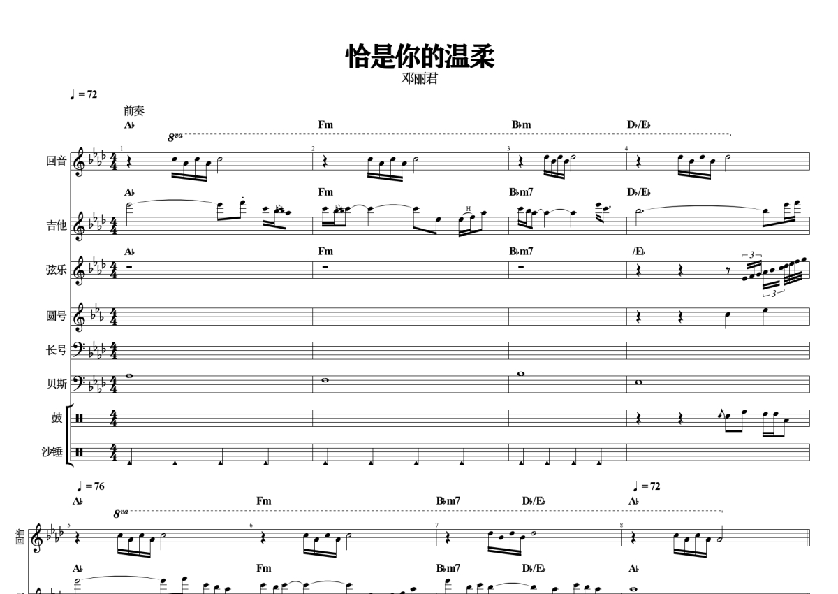 邓丽君《恰似你的溫柔》乐队总谱 - 石头音乐原版记谱