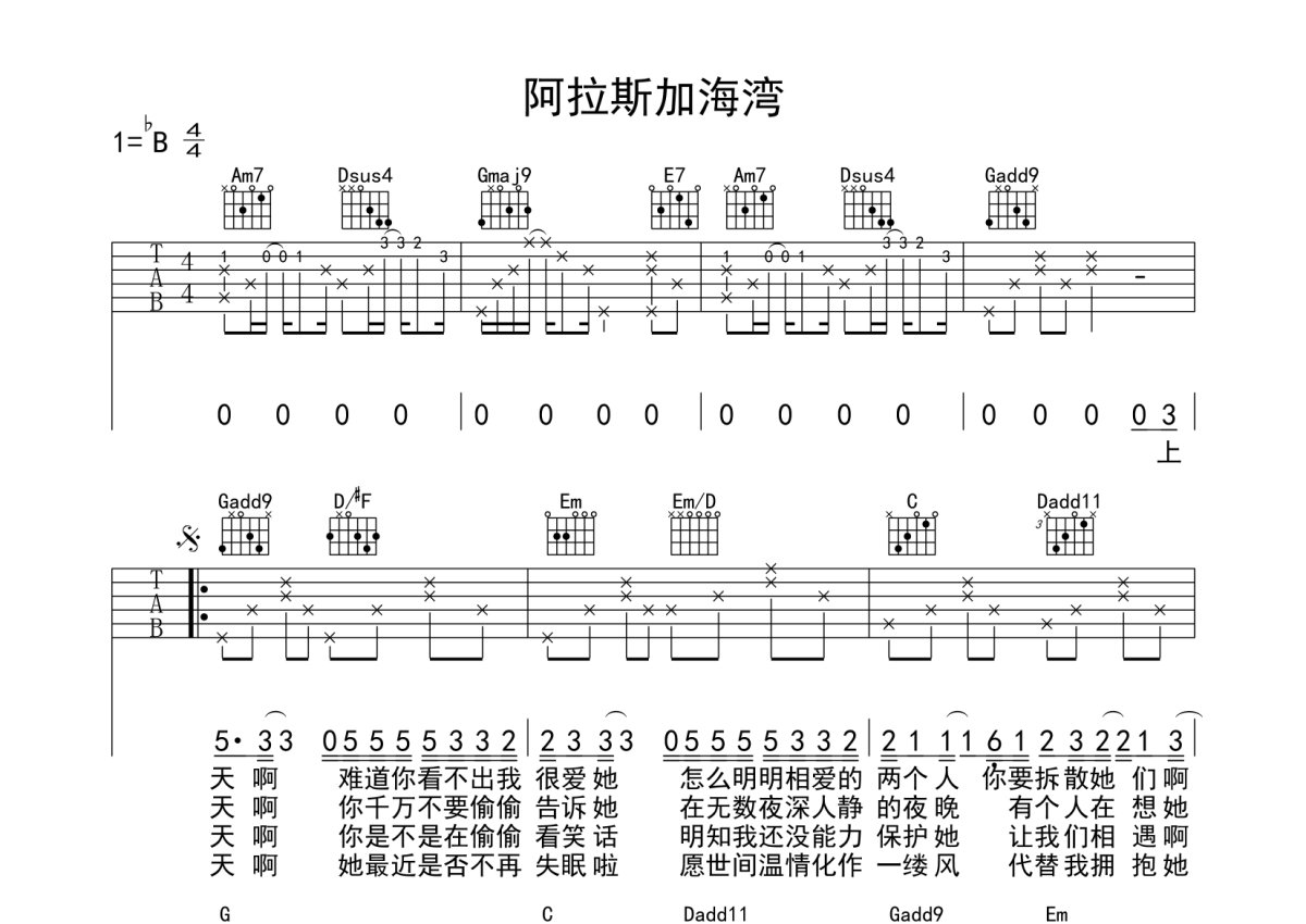《阿拉斯加海湾》是蓝心羽演唱的一首歌曲,本吉他谱采用的是G调指法编配,这份吉他谱共有两张高清图谱,图谱由 @机智的橘子 编配上传,图谱使用六线谱编配,包含吉他和弦指法、简谱以及歌词部分,曲谱配备了相关的音频提供试听,使用这份阿拉斯加海湾吉他谱,可以让你更加方便地掌握这首歌曲的弹唱技巧,快来尝试吧。变调夹3品原调段落与原曲一致有问题微信:ju11134988。