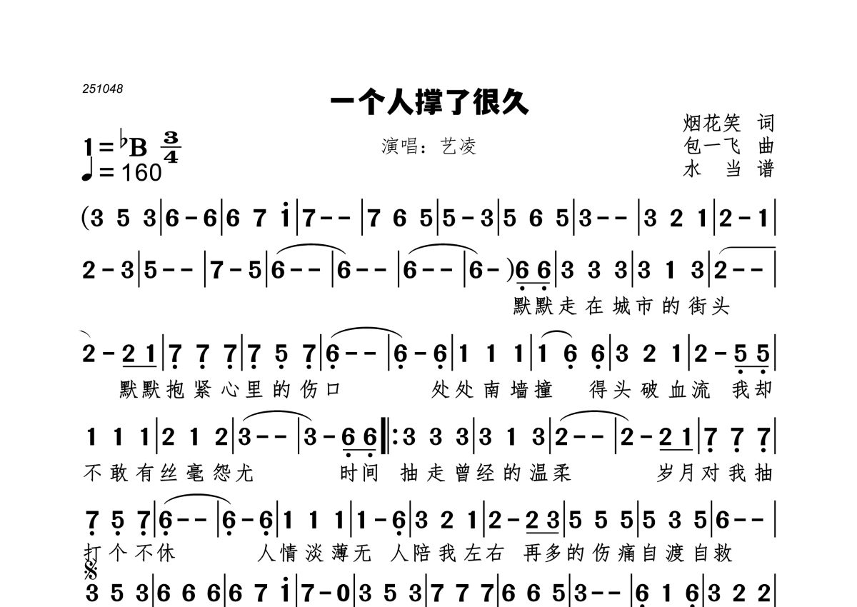 《一个人撑了很久》是艺凌演唱的一首歌曲,拍号为4/4拍,歌曲速度为每分钟160拍,这份简谱共有一张高清图谱,图谱由 @水当 编配上传。