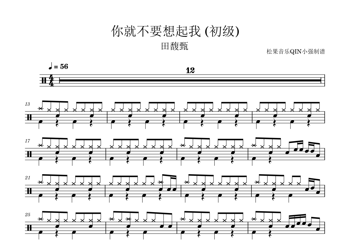 田馥甄《你就不要想起我(初级)》架子鼓谱