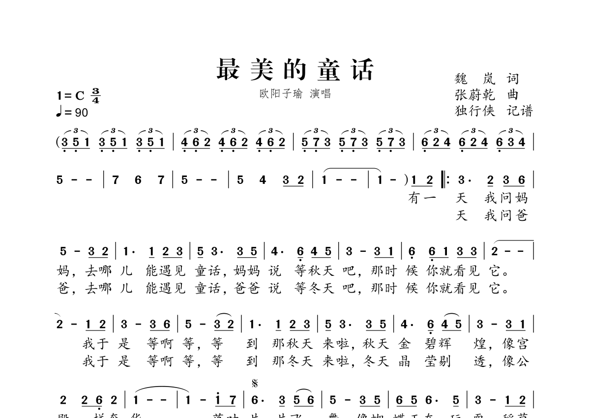 最美的童话简谱 - 欧阳子瑜演唱