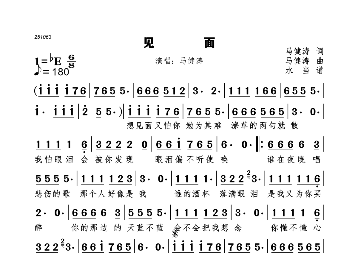 见面简谱 - 马健涛演唱