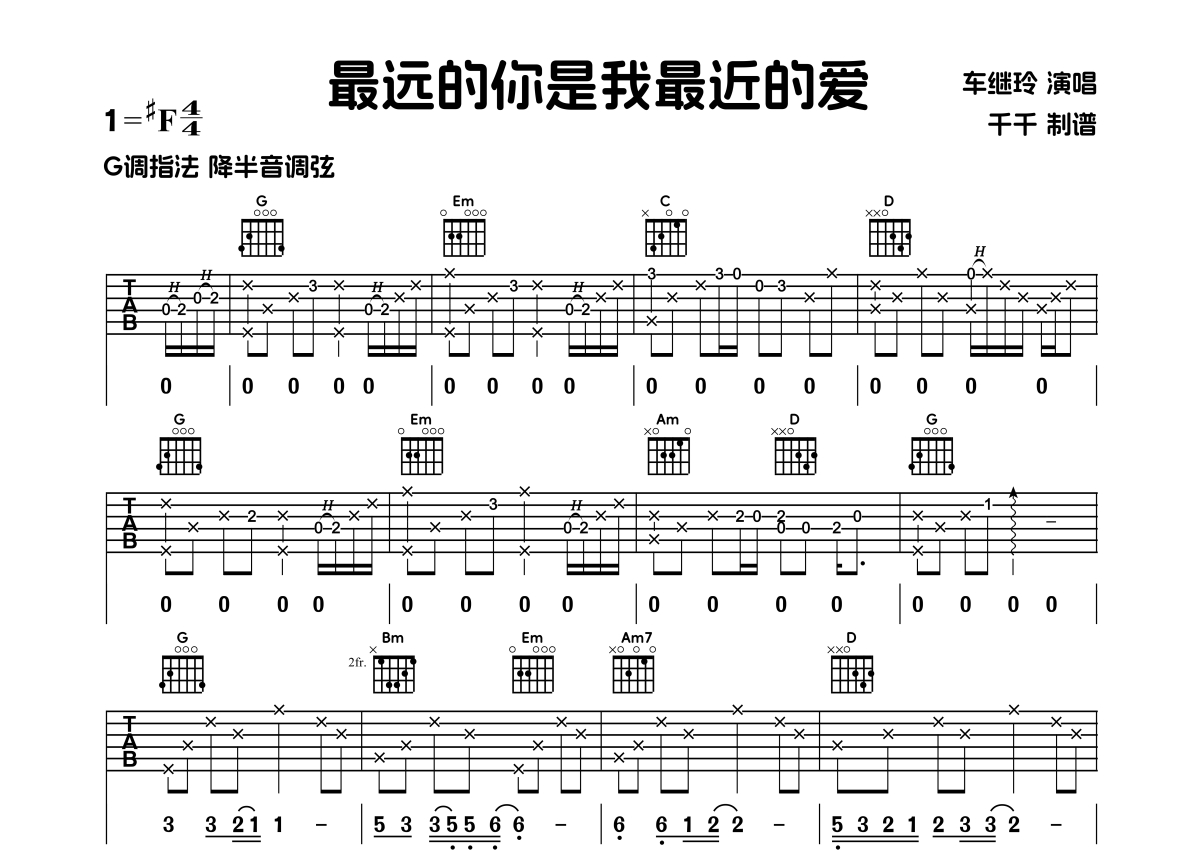 《最远的你是我最近的爱》吉他谱 - 车继铃 - G调弹唱六线谱