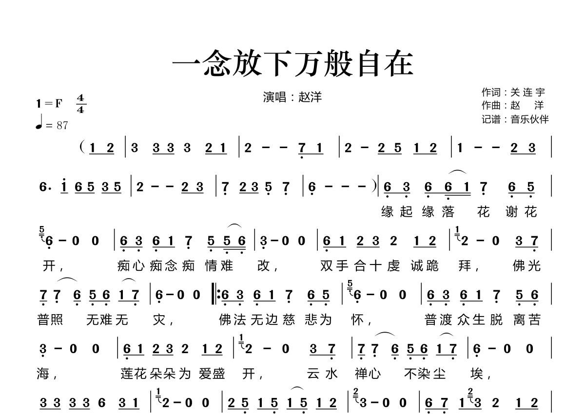 一念放下万般自在简谱 - 赵洋演唱