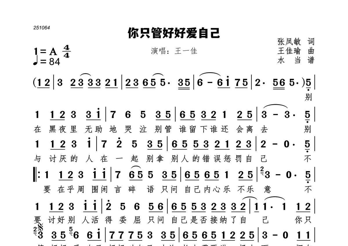 你只管好好爱自己简谱 - 王一佳演唱