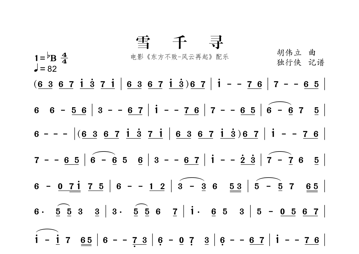 雪千寻简谱 - 胡伟立演唱