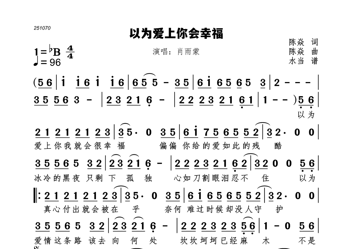 以为爱上你会幸福简谱 - 肖雨蒙演唱