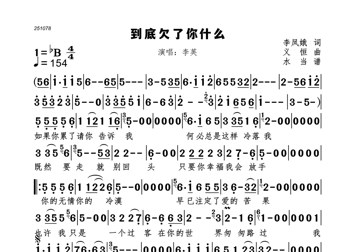 到底欠了你什么简谱 - 李英演唱