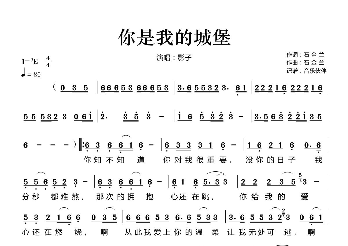 你是我的城堡简谱 - 影子演唱