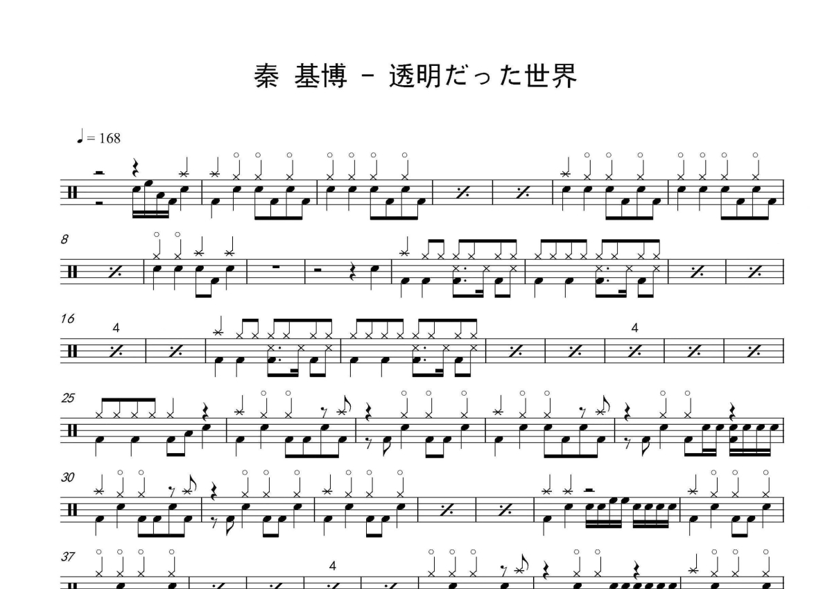 《透明だった世界》是秦 基博演唱的一首歌曲,拍号为4/4拍,歌曲速度为每分钟168拍,这份架子鼓谱共有两张高清图谱,图谱由 @音符喷血者 编配上传,图谱使用五线谱编配,使用这份透明だった世界架子鼓谱,你将能够轻松地敲打出这首秦 基博的透明だった世界,快来尝试吧。