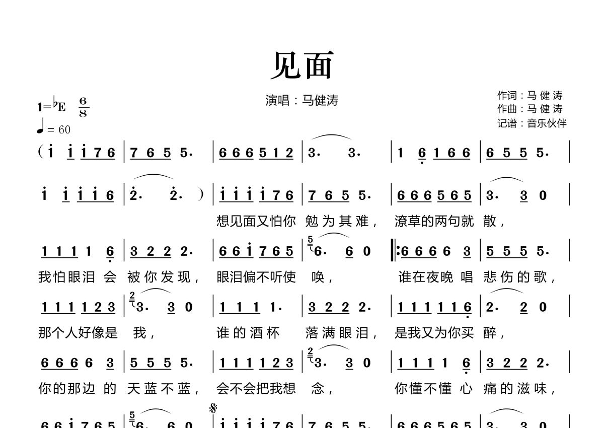 《见面》简谱 - 马健涛