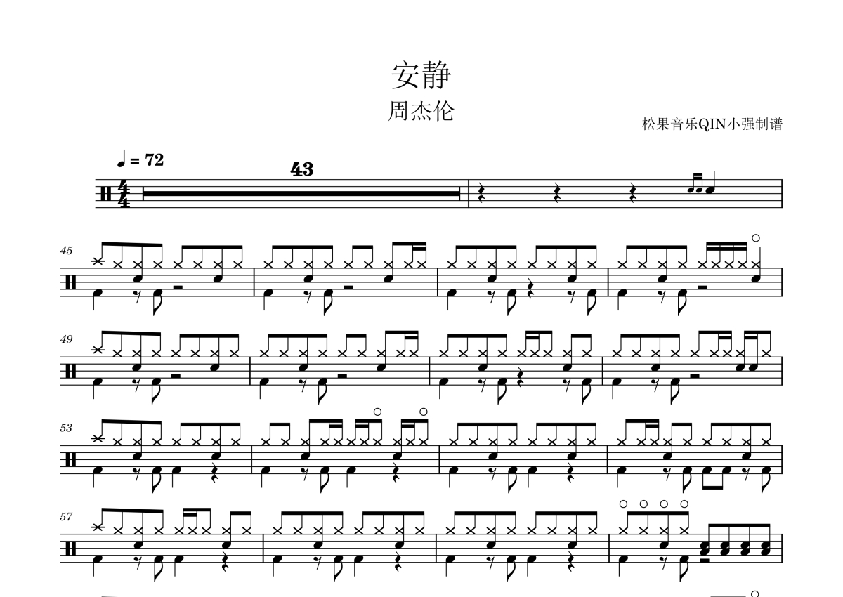 安静架子鼓谱 - 周杰伦演唱