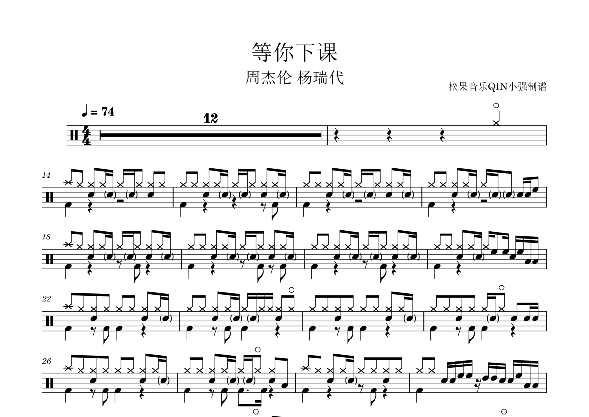 周杰伦 杨瑞代《等你下课》架子鼓谱