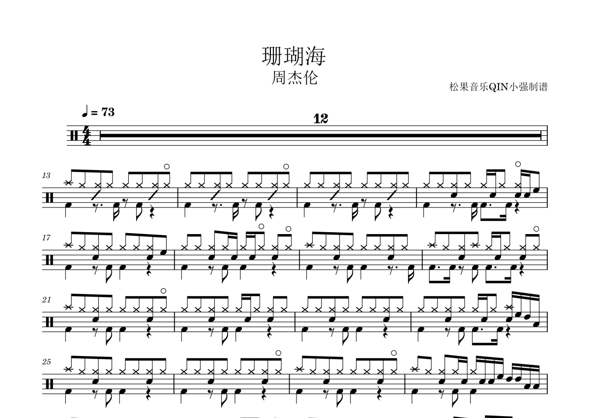 周杰伦、梁心颐《珊瑚海》架子鼓谱