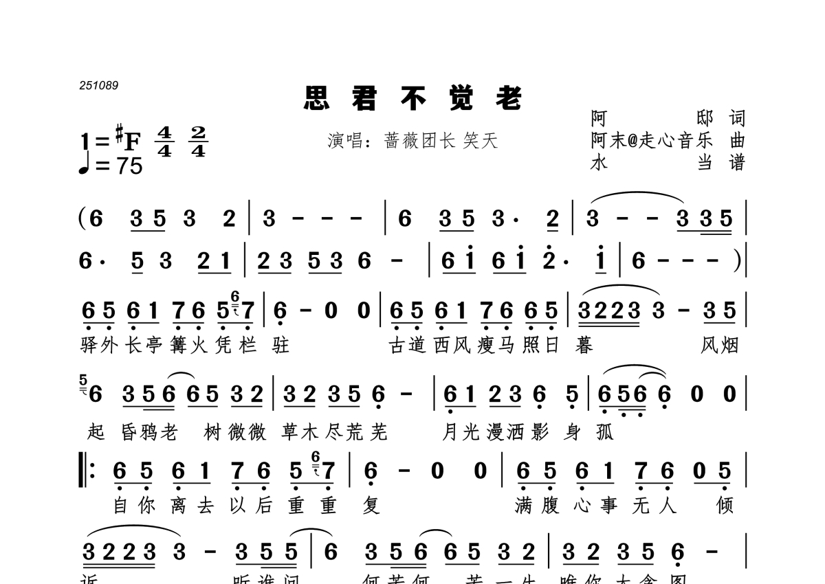 思君不觉老简谱 - 蔷薇团长 笑天演唱