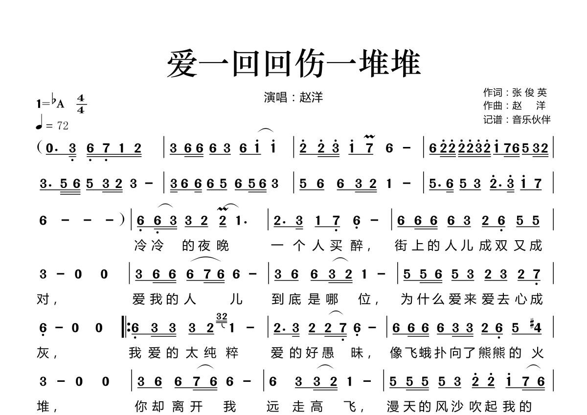 爱一回回伤一堆堆简谱 - 赵洋演唱