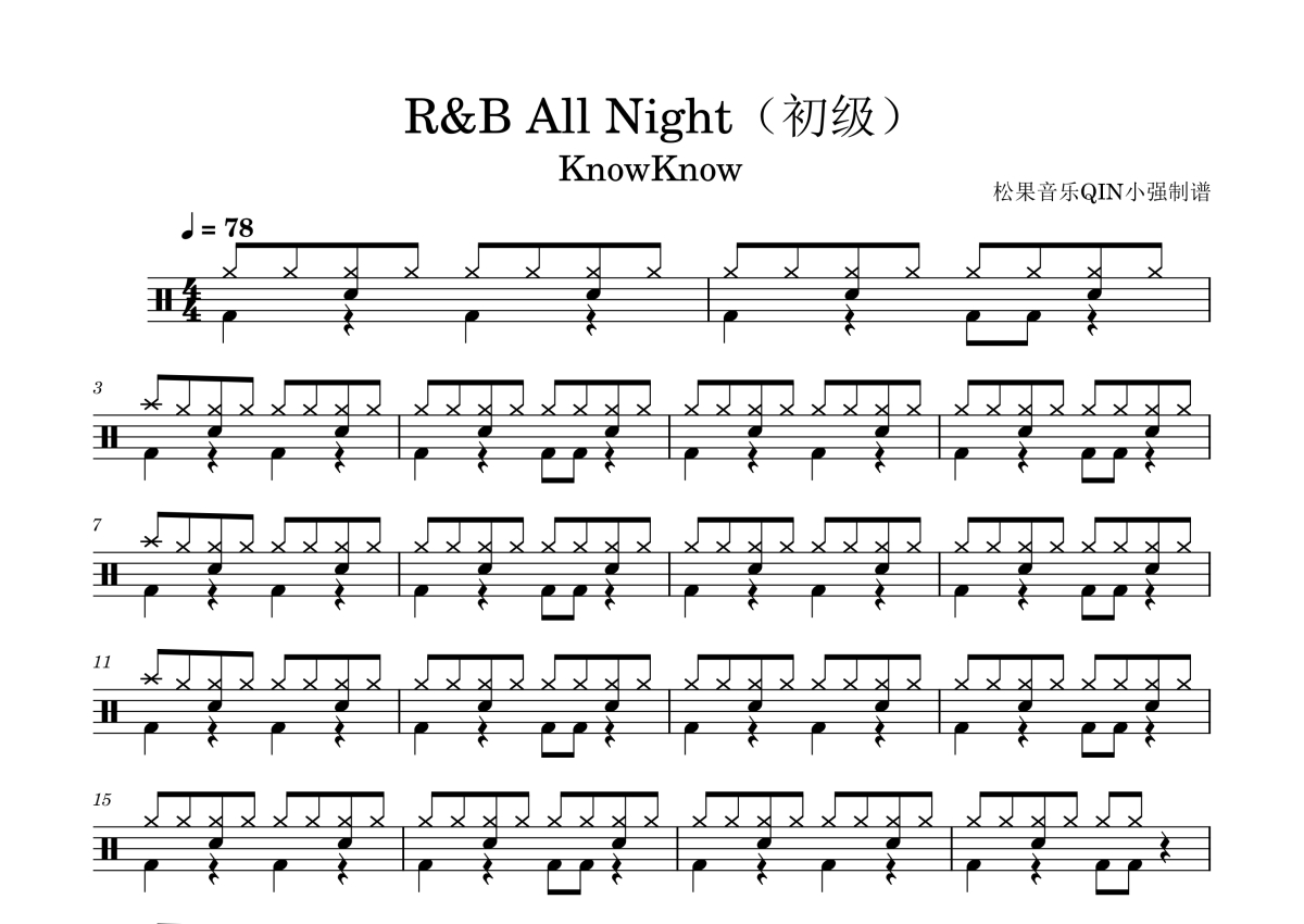 《R&B All Night》是KnowKnow演唱的一首歌曲,拍号为4/4拍,这份架子鼓谱共有两张高清图谱,图谱由 @松果音乐QIN小强 编配上传,图谱使用五线谱编配,使用这份R&B All Night架子鼓谱,你将能够轻松地敲打出这首KnowKnow的R&B All Night,快来尝试吧。《R&B All Night》是中国说唱男歌手KnowKnow与其所属组合Higher Brothers合作演唱的歌曲,收录于2019年发行的KnowKnow首张个人专辑《Mr. Enjoy Da Money》中,为该专辑第11首曲目。