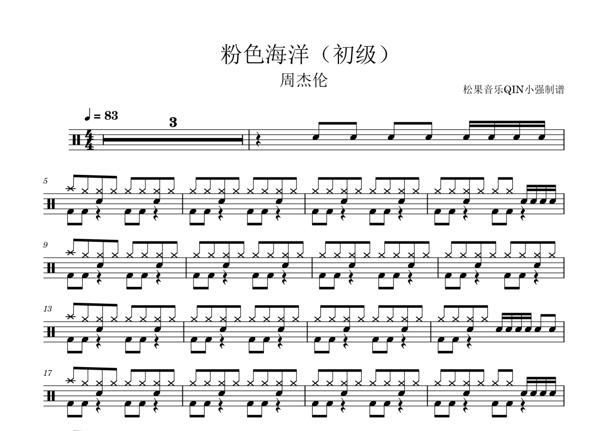 周杰伦《粉色海洋(初级)》架子鼓谱