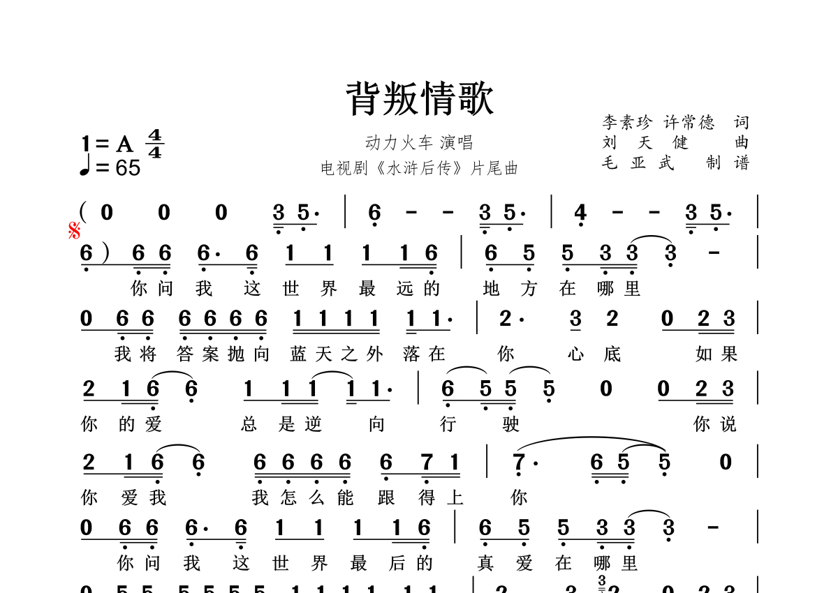 《背叛情歌》是动力火车演唱的一首歌曲,这份简谱共有一张高清图谱,图谱由 @秋天的童话 编配上传。