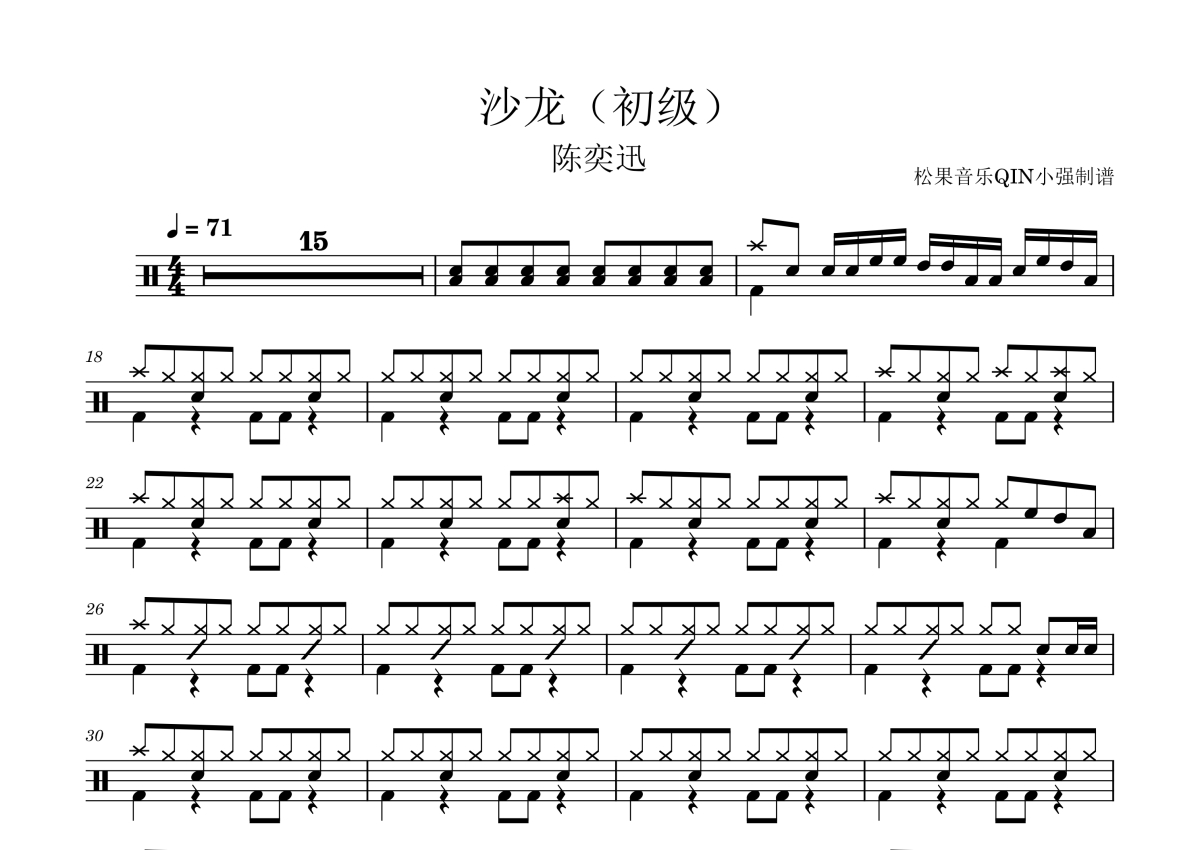 《沙龙(初级)》是初级演唱的一首歌曲,这份架子鼓谱共有两张高清图谱,图谱由 @松果音乐QIN小强 编配上传,图谱使用五线谱编配,使用这份沙龙(初级)架子鼓谱,你将能够轻松地敲打出这首初级的沙龙(初级),快来尝试吧。《沙龙》是由黄伟文作词,陈奕迅作曲并演唱的歌曲,收录于2009年3月23日发行的专辑《H3M》中。