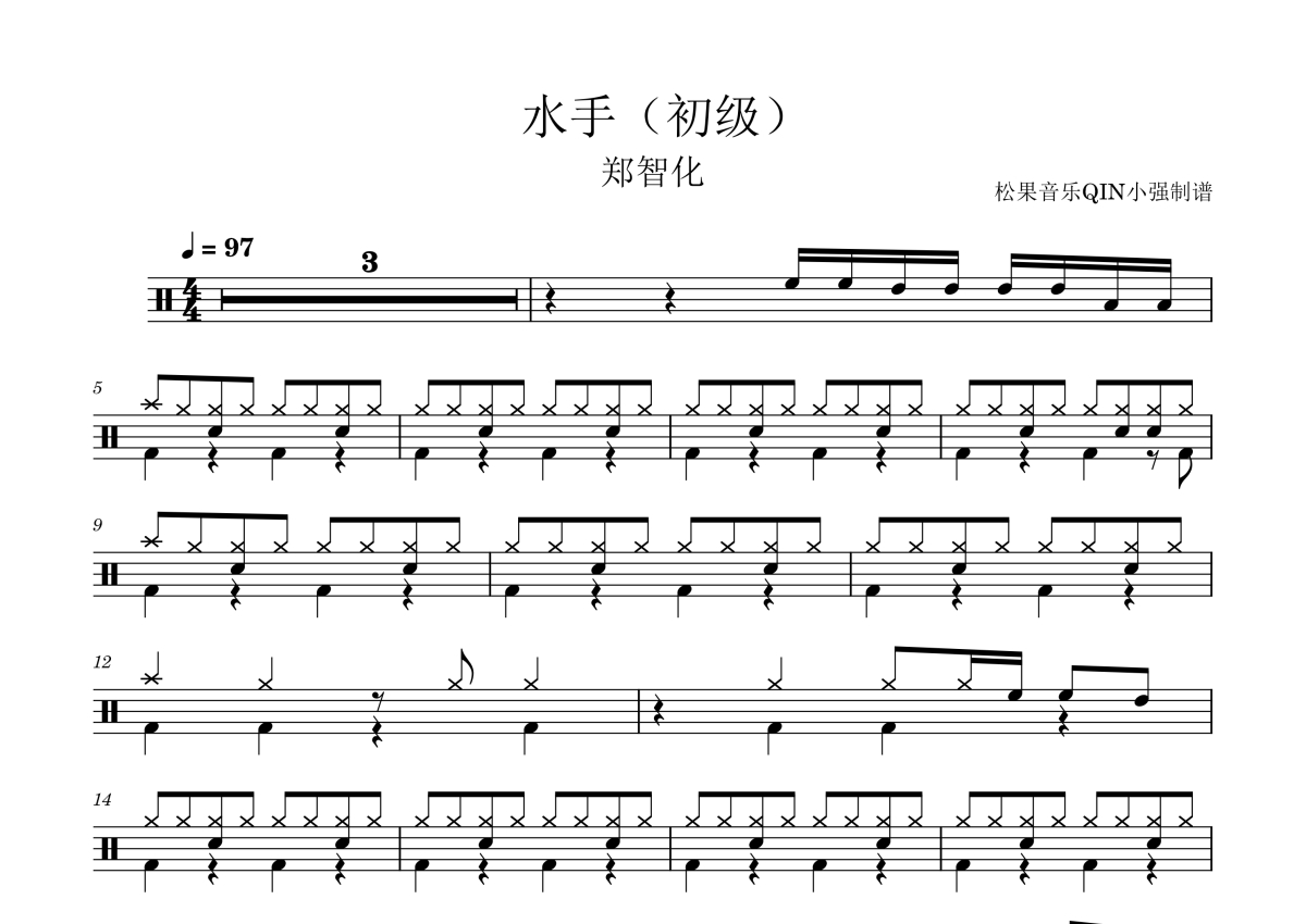 《水手(初级)》是初级演唱的一首歌曲,拍号为4/4拍,这份架子鼓谱共有三张高清图谱,图谱由 @松果音乐QIN小强 编配上传,图谱使用五线谱编配,使用这份水手(初级)架子鼓谱,你将能够轻松地敲打出这首初级的水手(初级),快来尝试吧。《水手》是由郑智化作词、作曲,陈志远编曲,郑智化演唱的歌曲,收录于郑智化1992年4月20日发行的专辑《私房歌》中。