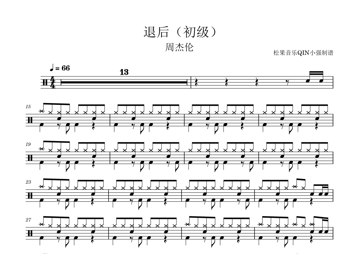 周杰伦《退后(初级)》架子鼓谱