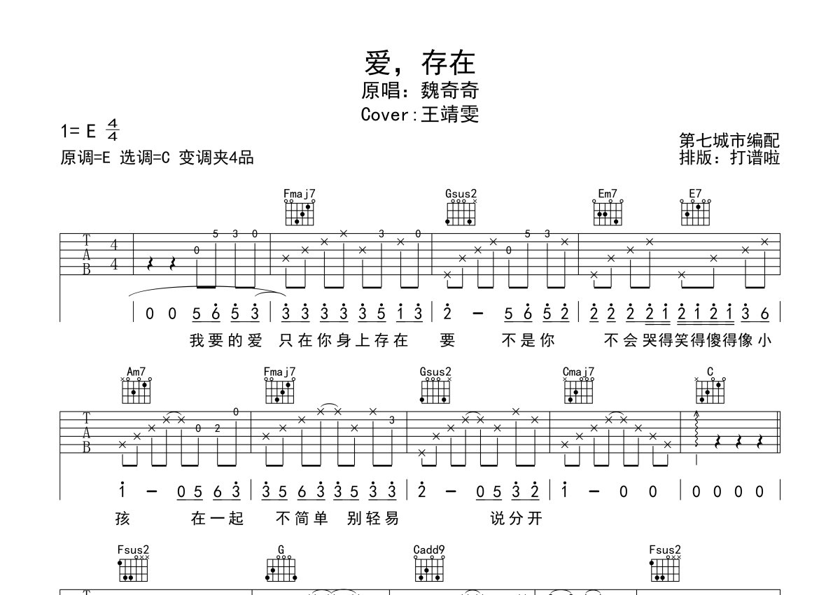 王靖雯不胖《爱,存在》吉他谱 - C调弹唱六线谱