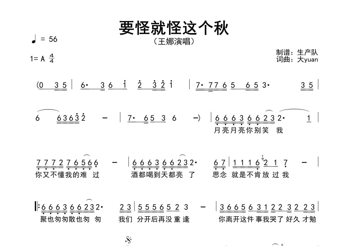 王娜《要怪就怪这个秋》简谱 - 原版简谱
